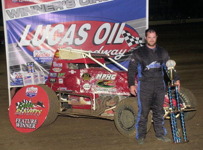 Lonnie Wheatley, WHEATLAND, Mo. (June 19, 2010) – California native Robert Ballou completed a sweep of the weekend’s Lucas Oil Sprint Bandits Tour ‘N Topless racing action by charging to victory lane in Saturday night’s 30-lap feature event at Lucas Oil Speedway.