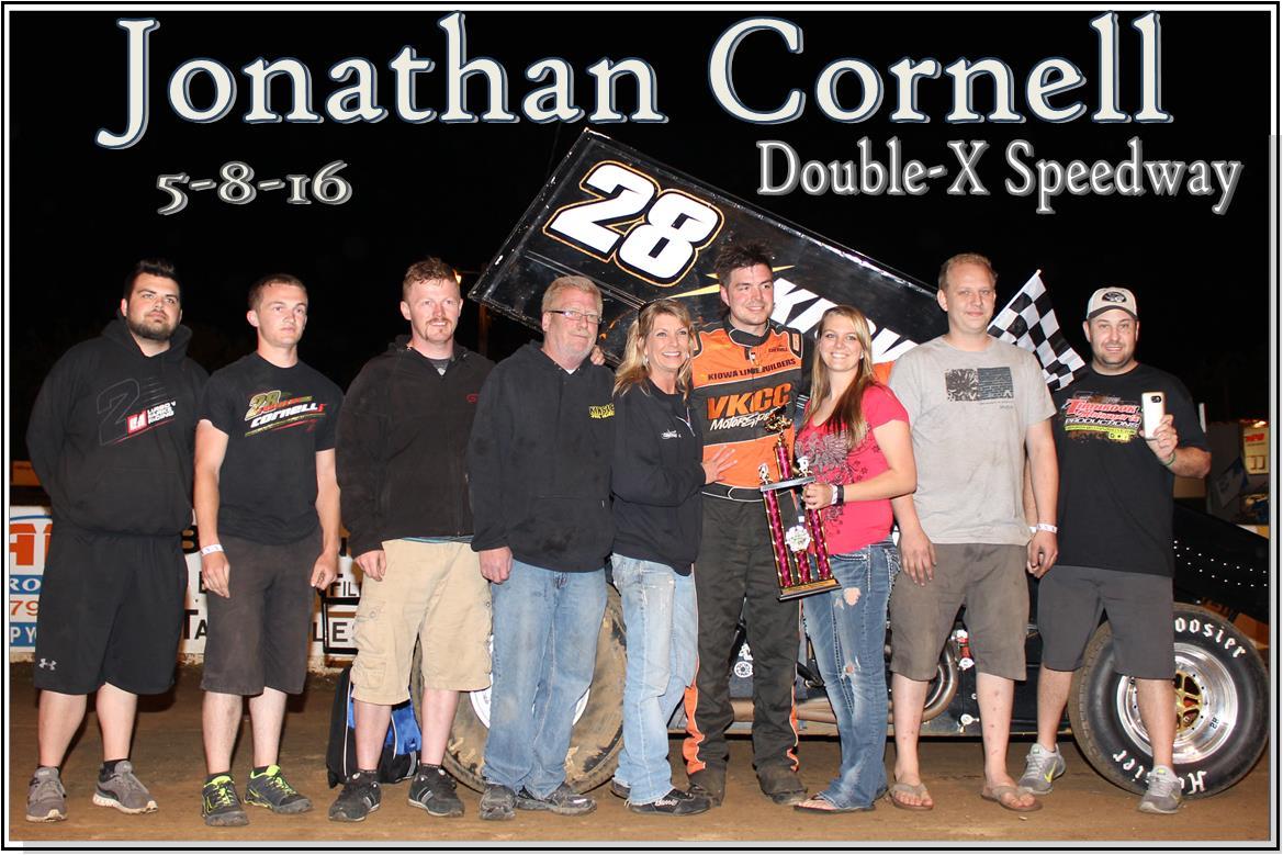CALIFORNIA, Mo. – What started off as a run-of-the-mill outing for Jonathan Cornell over Mother’s Day Weekend finished out in triumph by the time Sunday night rolled around. Impressive turnouts for the ASCS National and Warrior races at Lakeside Speedway and Lucas Oil Speedway, respectively, resulted in 14th and ninth-place finishes for the seasoned Sedalia, Mo. driver. Those results came before Cornell was the class of the field at Double-X Speedway on Mom’s Day, earning his first feature victory of the 2016 season.