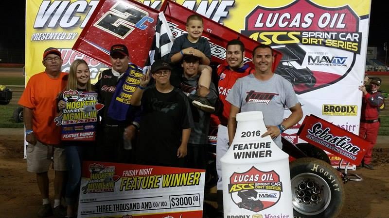 2016 ASCS National Winner(s): Sam Hafertepe, Jr. 7 (5/13 – Texas Motor Speedway; 6/12 – Rt. 66 Motor Speedway; 6/18 – Lucas Oil Speedway; 6/25 – Skagit Speedway; 7/1 – Grays Harbor Raceway; 7/2 – Grays Harbor Raceway; 8/20 – St. Francois County Raceway); Johnny Herrera 5 (3/17-Heart O’ Texas Speedway; 6/3-Hartford Speedway; 7/22 – Black Hills Speedway; 7/23 – Black Hills Speedway; 9/22 – Lucas Oil Speedway); Blake Hahn 3 (7/8 – Gallatin Speedway; 7/9 – Gallatin Speedway; 7/28 – Park Jefferson Speedway); Brian Brown 2 (5/5 - Lakeside Speedway; 8/21 – Missouri State Fair Speedway); Brad Loyet 2 (6/15 – Lawton Speedway; 6/17 – Mo. State Fair Speedway); Bryan Clauson 2 (6/16 – Creek County Speedway; 7/31 - Badlands Motor Speedway); Aaron Reutzel 2 (5/14 – Texas Motor Speedway; 9/4 – Jackson Motorplex); Wayne Johnson 2 (3/19 - Devil’s Bowl Speedway; 9/23 – Lucas Oil Speedway); Brandon Hanks 1 (3/25-Cotton Bowl Speedway); Josh Baughman 1 (3/26 – Bronco Raceway Park); Marc Duperron 1 (6/24 – Skagit Speedway); Jamie Ball 1 (8/4 - Knoxville Raceway); Jamie Veal 1 (8/5 - Knoxville Raceway); Sammy Swindell 1 (8/6 - Knoxville Raceway); Ian Madsen 1 (9/2 – Jackson Motorplex);