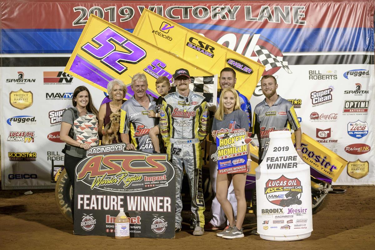 WHEATLAND, Missouri (September 19, 2019) - Lap 17 proved decisive for both winners Thursday night as the 9th annual Jesse Hockett/Daniel McMillin Memorial opened its three-night run at Lucas Oil Speedway.