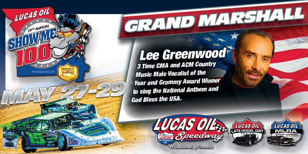 Greenwood will sing the National Anthem during opening ceremonies and also his iconic song "God Bless the USA," after driver introductions just prior to the green flag falling to begin the 100-lap feature.
