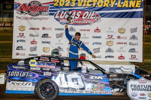 WHEATLAND, MO. (April 18, 2024) - Dayton Pursley grew up going to the races at Lucas Oil Speedway as his dad, long-time USRA Modified driver Jason Pursley, chased victories. So it was pretty special for Dayton when he won his first feature race at the speedway last summer.