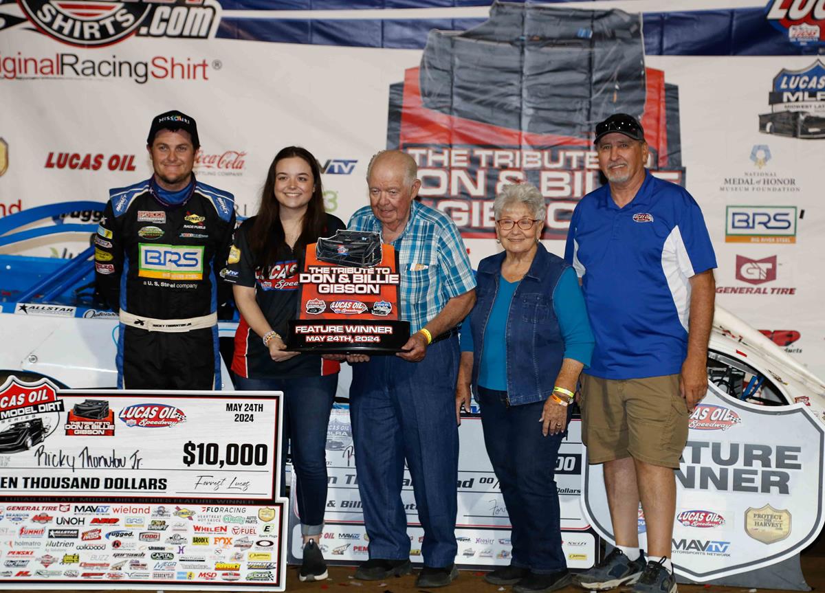 WHEATLAND, MO. (May 24, 2024) - Ricky Thornton Jr. continued his dominance at the 32nd annual Lucas Oil Show-Me 100 Presented by Missouri Division of Tourism, winning Friday night's Tribute to Don and Billie Gibson.